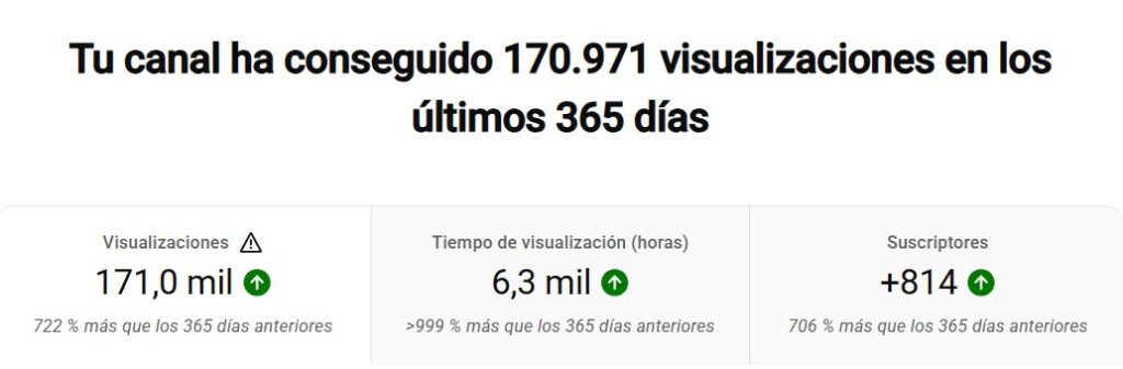 Imagina una nueva página web en un sector de los más competidos y rentables de internet, que consiga más de 13.000 visitas al mes, a lo largo de un año, de forma sostenida y natural, siempre con tendencia estable de crecimiento, sin hacer publicidad de pago, simplemente creando contenido con valor para el público objetivo y de gran calidad. Hoy en día es prácticamente imposible sin dejarse un dineral en el intento. Pero esto es Youtube: